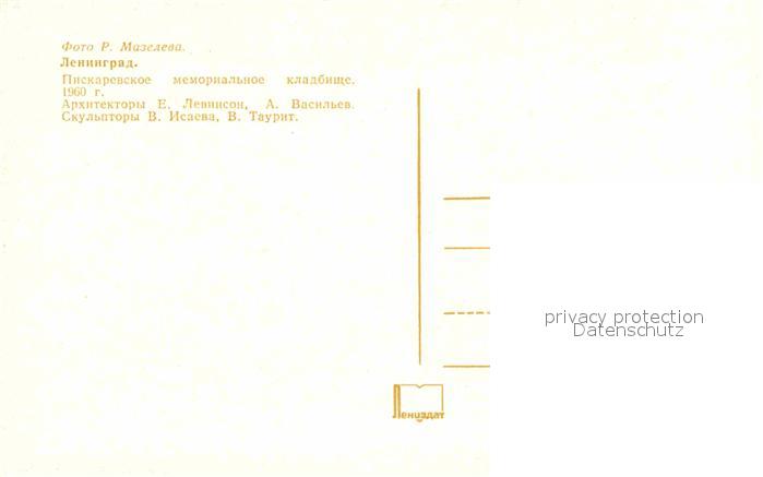 St Petersburg Leningrad Piskariewskoe Friedhof postalisch nicht gelaufen Erhaltung siehe scans [NatalD47]