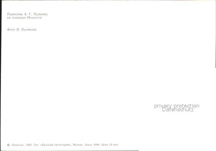 St Petersburg Leningrad Puschkin Denkmal postalisch nicht gelaufen Keine Postkarte (siehe scan) Erhaltung siehe scans [NatalD47 kt111box]