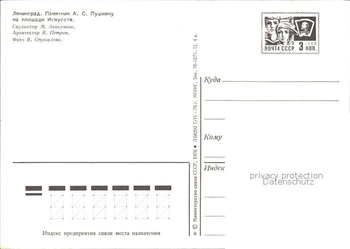St Petersburg Leningrad Puschkin Denkmal postalisch nicht gelaufen Ganzsache (eingedruckte Briefmarke) Erhaltung siehe scans [NatalD47 kt111box]