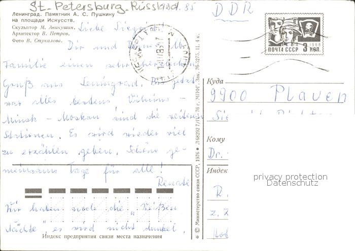 old postcard St Petersburg Leningrad Puschkin Denkmal Statue postalisch gelaufen