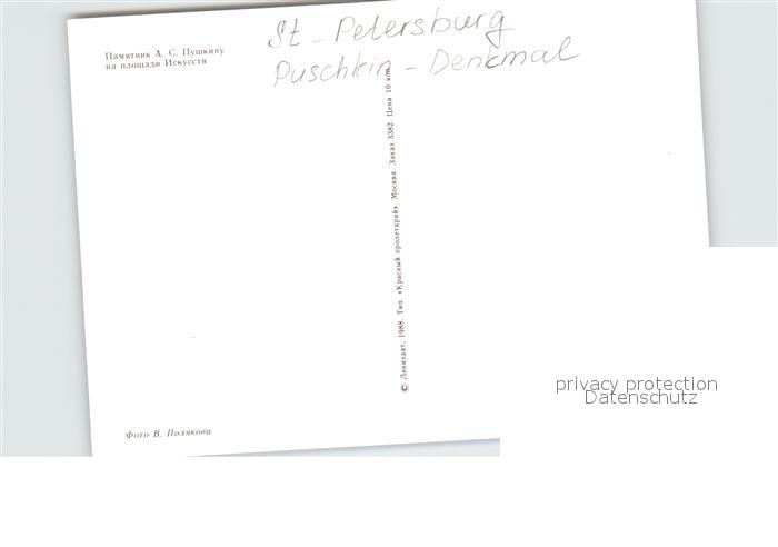 St Petersburg Leningrad Puschkin Denkmal Statue postalisch nicht gelaufen Erhaltung siehe scans [FriedD77 kt114box]