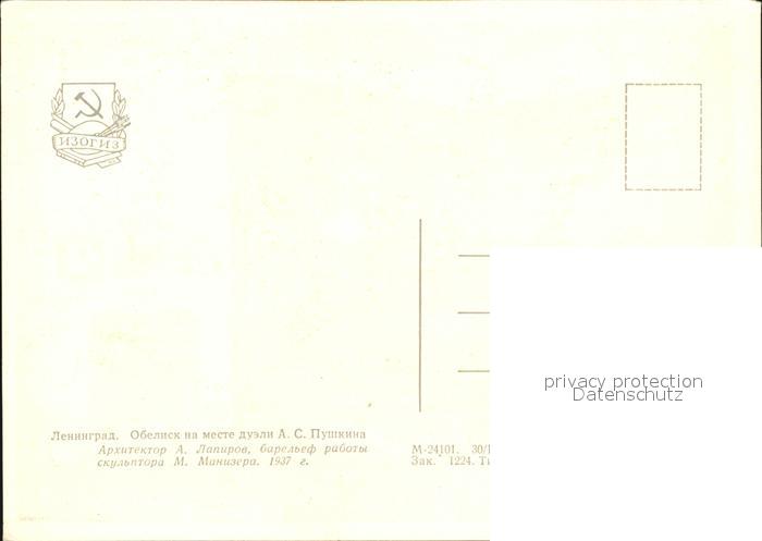 St Petersburg Leningrad Puschkin Obelisk postalisch nicht gelaufen Erhaltung siehe scans [NatalD47 kv013box]