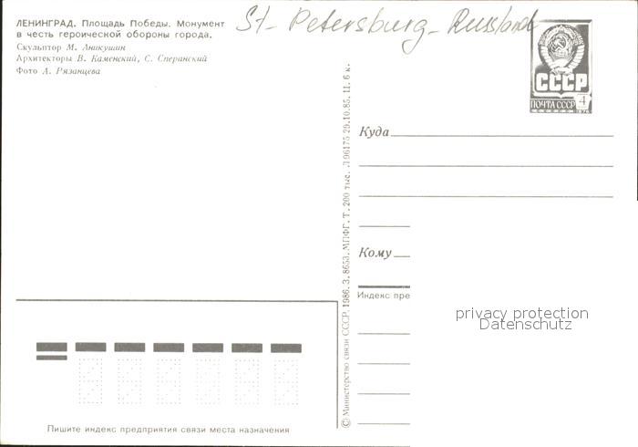 St Petersburg Leningrad Siegesplatz Denkmal Hochhaus postalisch nicht gelaufen Erhaltung siehe scans