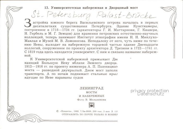 St Petersburg Leningrad Stadtansicht Palast Bruecke postalisch nicht gelaufen Erhaltung siehe scans