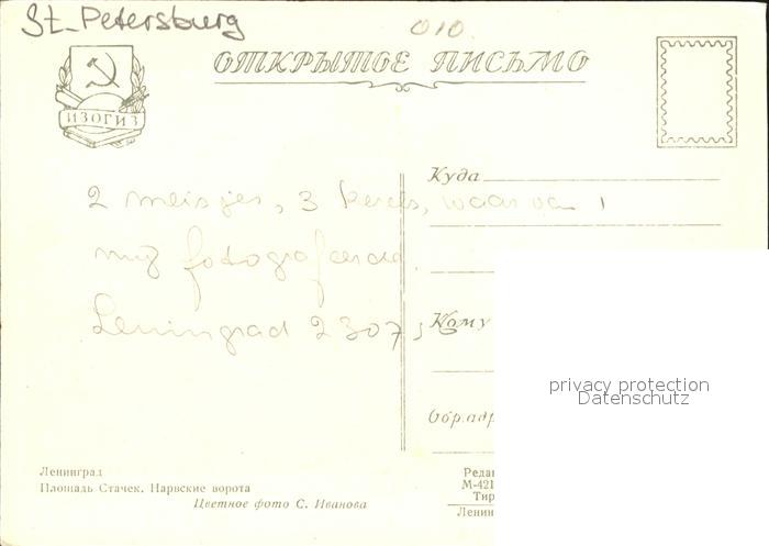 St Petersburg Leningrad Triumphbogen postalisch nicht gelaufen Erhaltung siehe scans