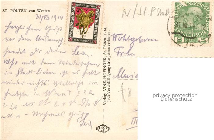 43008476 alte Postkarte St Poelten Blick von Westen postalisch gelaufen Erhaltung siehe scans [LiesaD40] KatCode: 11390123030201