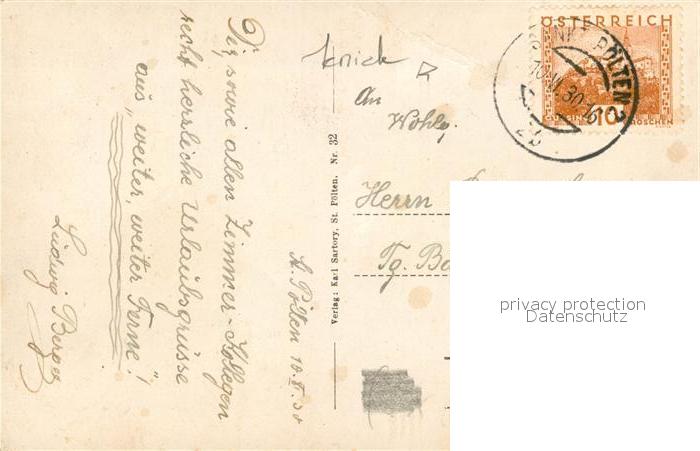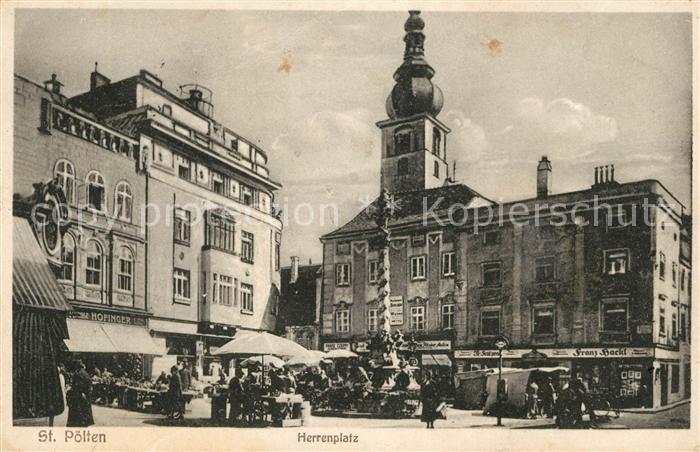 43017469 alte Postkarte St Poelten Herrenplatz Markt Saeule Kirchturm postalisch gelaufen Erhaltung siehe scans [FriedD77] KatCode: 11390123030201