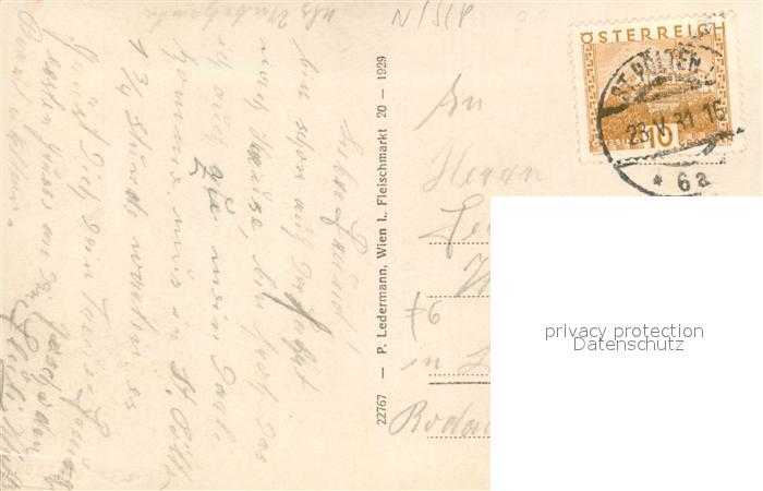 43017477 alte Postkarte St Poelten Rathausplatz Rathaus Pestsaeule postalisch gelaufen Erhaltung siehe scans [FriedD77] KatCode: 11390123030201