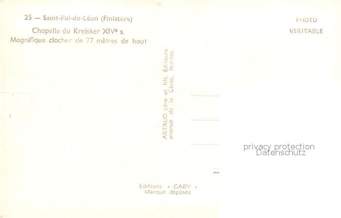 13825926 St-Pol-de-Leon 29 Finistere Chapelle du Kreisker Magnifique clocher postalisch nicht gelaufen Erhaltung siehe scans [FriedD77] Frie Katcode 11170029329259