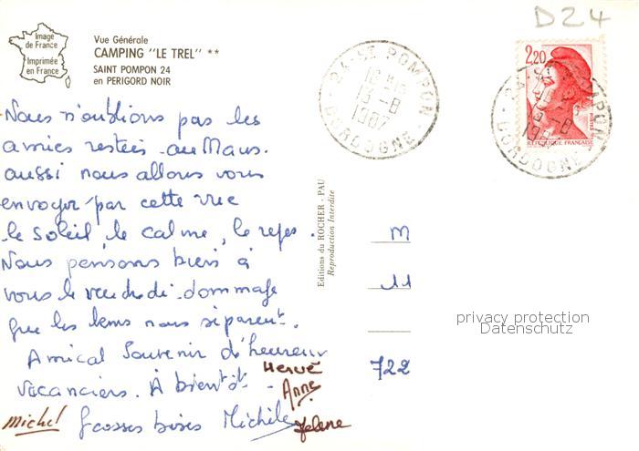 13814541 St-Pompont 24 Dordogne Camping Le Trel Vue generale aerienne postalisch gelaufen Erhaltung siehe scans [WerneD78] carte postale Wern Katcode 11170024424488