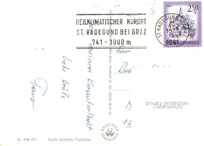 72901554 alte Postkarte St Radegund Reha Zentrum der PVA Hallenbad postalisch gelaufen Erhaltung siehe scans [FriedD77] KatCode: 11390