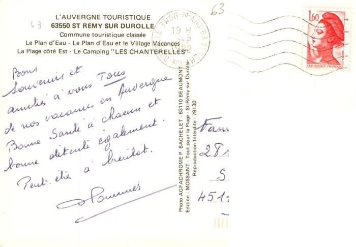 13948169 St-Remy-sur-Durolle Plan d’Eau et village vacances Plage Camping Les Chanterelles KatCode 11170063563393