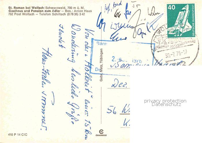 72905446 alte Postkarte St Roman Wolfach Gasthaus Adler postalisch gelaufen Erhaltung siehe scans [NatalD47] KatCode: 11110008317145