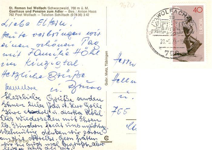 73931142 alte Postkarte St Roman Wolfach Gasthaus Pension zum Adler Kirche postalisch gelaufen Erhaltung siehe scans [FriedD77] KatCode: 11110008317145