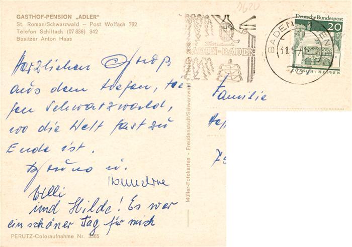 73931140 alte Postkarte St Roman Wolfach Gasthof Pension Adler Gastraum Panorama postalisch gelaufen Erhaltung siehe scans [FriedD77] KatCode: 11110008317145