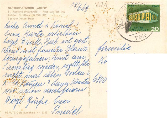 73930420 alte Postkarte St Roman Wolfach Gasthof Pension Adler Panorama Schwarzwald postalisch gelaufen Erhaltung siehe scans [FriedD77] KatCode: 11110008317145