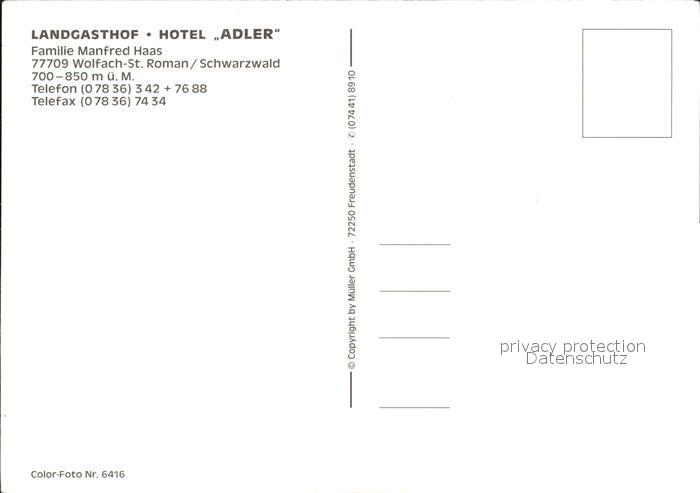 72419207 St Roman Wolfach Landgasthof Hotel Adler Kirche Rehe postalisch nicht gelaufen Erhaltung siehe scans KatCode: 11110008317145
