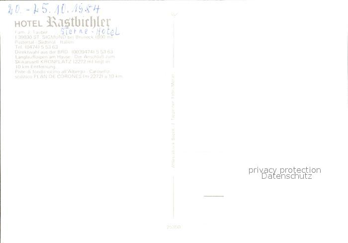 St Sigmund Pustertal Hotel Restaurant Rastbichler Hallenbad Skilanglauf postalisch nicht gelaufen Erhaltung siehe scans