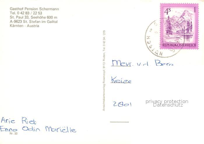 73517497 alte Postkarte St Stefan Gailtal Gasthof Pension Schermann postalisch gelaufen Erhaltung siehe scans [KathaD81] KatCode: 11390212020316