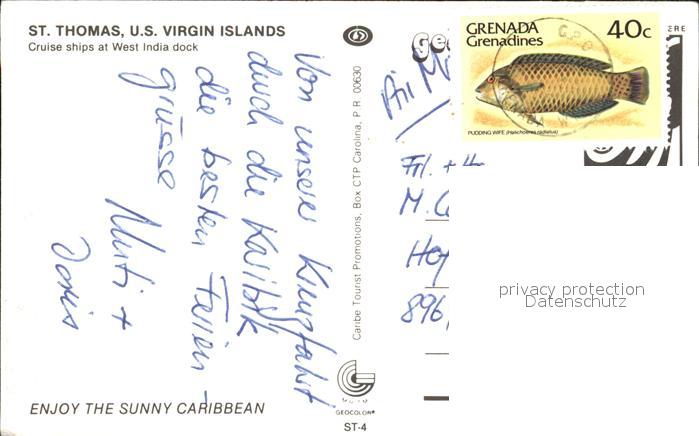 72534387 old postcard St Thomas Virgin Islands Panorama WestIndia Dock postalisch gelaufen Erhaltung siehe scans [AndreD76 kt121box] KatCode: 14140