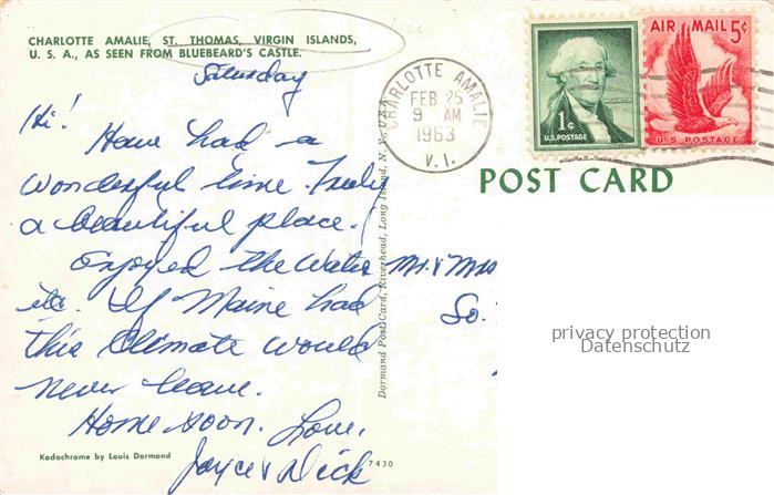 14104319 old postcard St Thomas Virgin Islands USA Charlotte Amalie as seen from Bluebeard’s Castle postalisch gelaufen Erhaltung siehe scans [FriedD77] KatCode: 14140