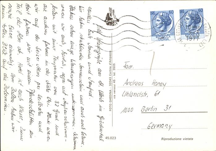old postcard St Ulrich Groeden Tirol Dolomiten Panorama postalisch gelaufen Erhaltung siehe scans