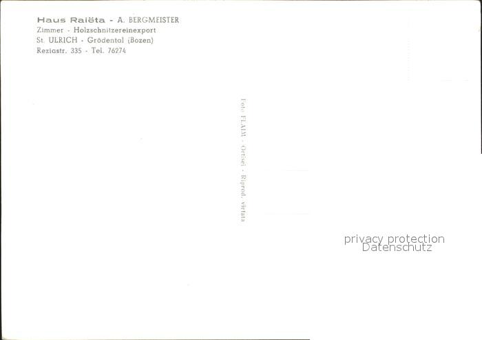 St Ulrich Groeden Tirol Haus Raieta Bergmeister postalisch nicht gelaufen Erhaltung siehe scans