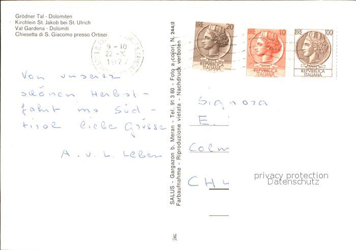 old postcard St Ulrich Groeden Tirol Kirchlein Sankt Jakob postalisch gelaufen Erhaltung siehe scans