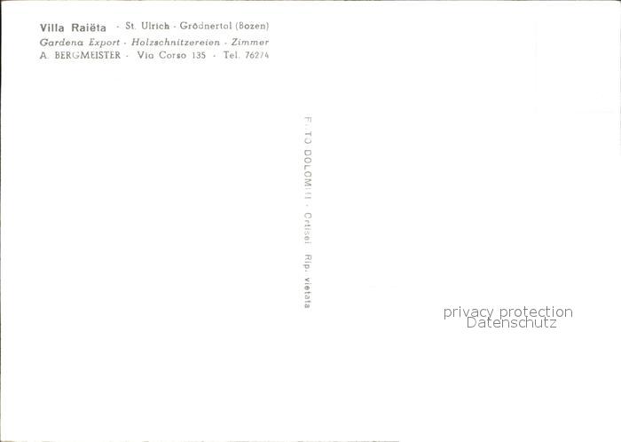 St Ulrich Groeden Tirol Villa Raieta postalisch nicht gelaufen Erhaltung siehe scans