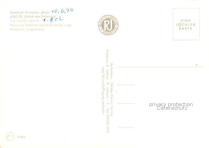 13189458 St Ulrich Pillersee Gasthof-Pension Braeu postalisch nicht gelaufen Erhaltung siehe scans [PaolaD17] KatCode: 11390335070417