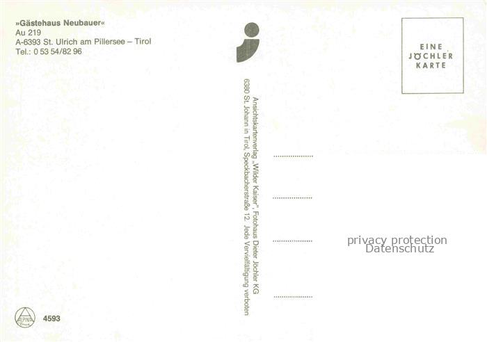 74085710 St Ulrich Pillersee Tirol AT Gaestehaus Neubauer postalisch nicht gelaufen Erhaltung siehe scans [WerneD78] KatCode: 11390335070417