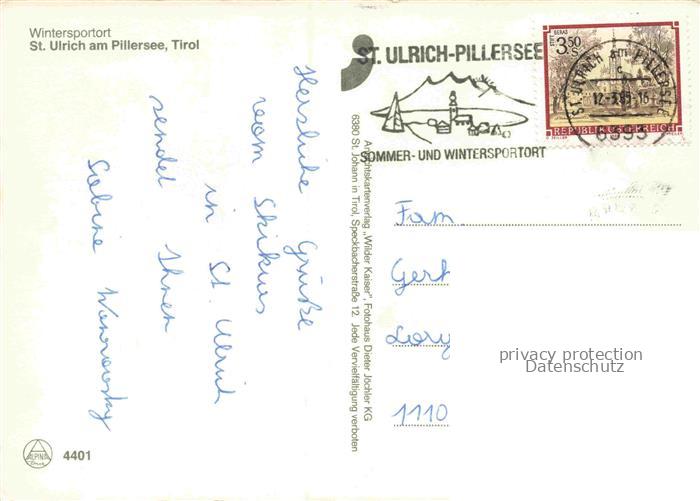 74157550 alte Postkarte St Ulrich Pillersee Tirol AT Kirche Hotel Schnee Winterlandschaft Berge Tannen Strassenlaterne postalisch gelaufen Erhaltung siehe scans [Karloger] KatCode: 11390335070417