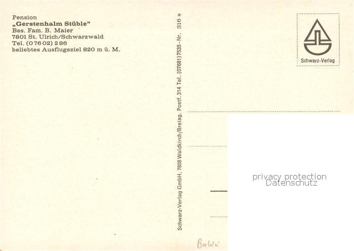 73644352 St Ulrich Schwarzwald Pension Gerstenhalm Stueble Terrasse Panorama postalisch nicht gelaufen Erhaltung siehe scans [FriedD77] KatCode: 11110008315014