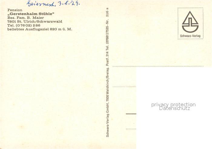 73644358 St Ulrich Schwarzwald Pension Gerstenhalm Stueble Terrasse Panorama postalisch nicht gelaufen Erhaltung siehe scans [FriedD77] KatCode: 11110008315014