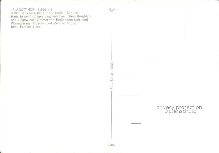 St Valentin Haide Vinschgau Plagoett Hof postalisch nicht gelaufen Erhaltung siehe scans