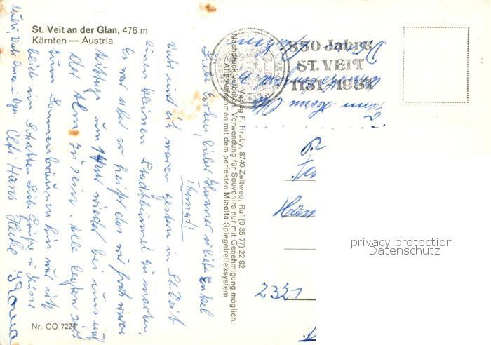 73829153 alte Postkarte St Veit Glan Fliegeraufnahme postalisch gelaufen Erhaltung siehe scans [FriedD77] KatCode: 11390213020527