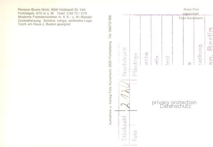 73858527 St Veit Huettstadl Pension Nickl Garten Teich postalisch nicht gelaufen Verlagstempel auf Karte Erhaltung siehe scans [FriedD77] Verlagstempel auf Karte Frie Katcode 11110009472138