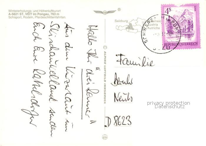 73587163 alte Postkarte St Veit Pongau Fliegeraufnahme postalisch gelaufen Erhaltung siehe scans [WerneD78] KatCode: 11390322050420