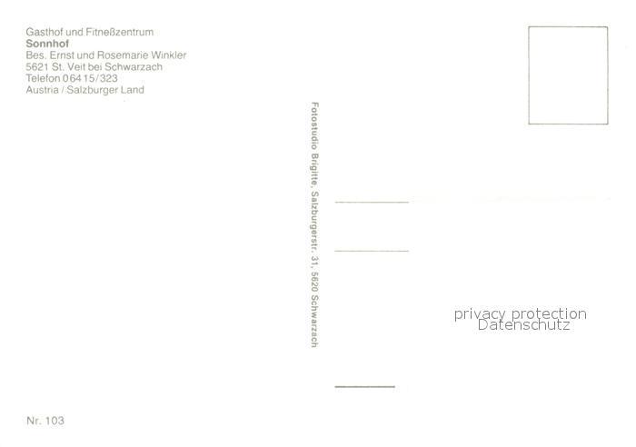 73326289 St Veit Pongau Gasthof und Fitnesszentrum Sonnhof postalisch nicht gelaufen Erhaltung siehe scans [WerneD78] KatCode: 11390322050420