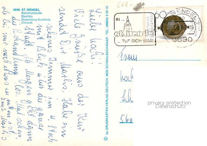 73213801 alte Postkarte St Wendel Bahnhofstrasse Basilika Bosenberg Kurklinik Chronik postalisch gelaufen Erhaltung siehe scans [FriedD77] KatCode: 11110010046117