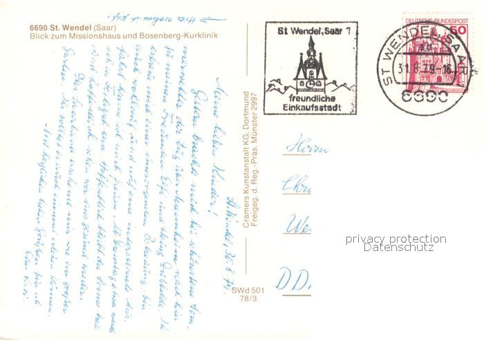73647447 alte Postkarte St Wendel Blick zum Missionshaus und Bosenberg Kurklinik Fliegeraufnahme postalisch gelaufen Erhaltung siehe scans [FriedD77] KatCode: 11110010046117