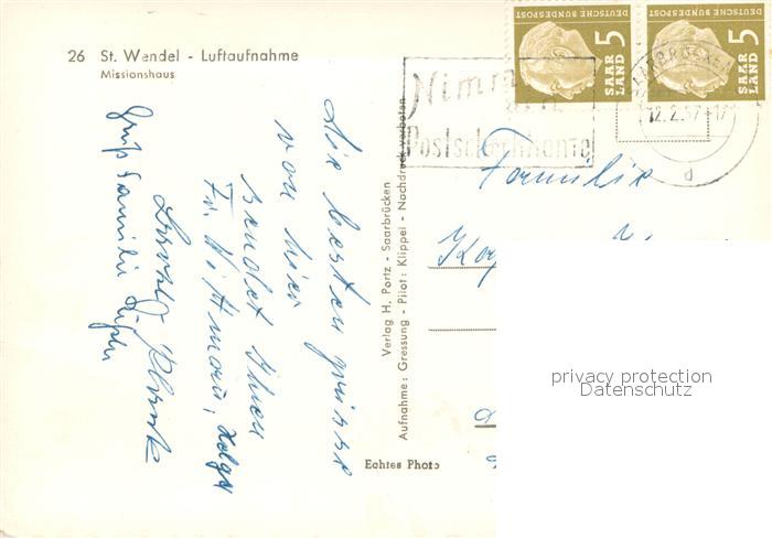 73662200 alte Postkarte St Wendel Fliegeraufnahme Missionshaus postalisch gelaufen Erhaltung siehe scans [LiesaD40] KatCode: 11110010046117