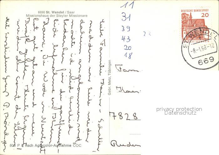 72600621 alte Postkarte St Wendel Missionshaus der Steyler Missionare postalisch gelaufen Erhaltung siehe scans [FriedD77] KatCode: 11110010046117