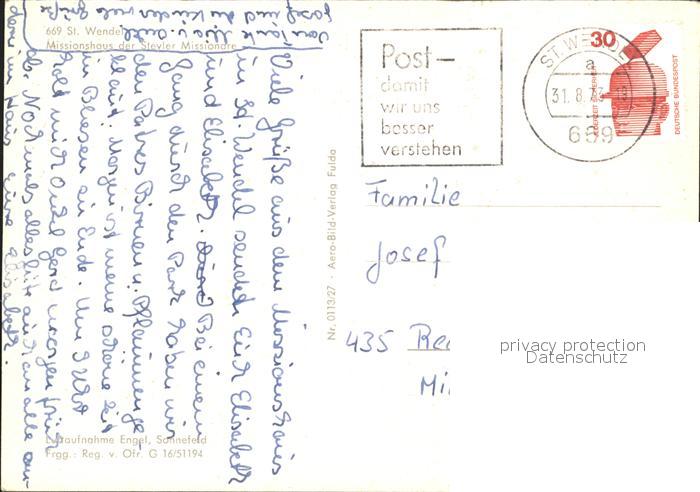 71984419 alte Postkarte St Wendel Missionshaus der Steyler Missionare postalisch gelaufen Erhaltung siehe scans KatCode: 11110010046117