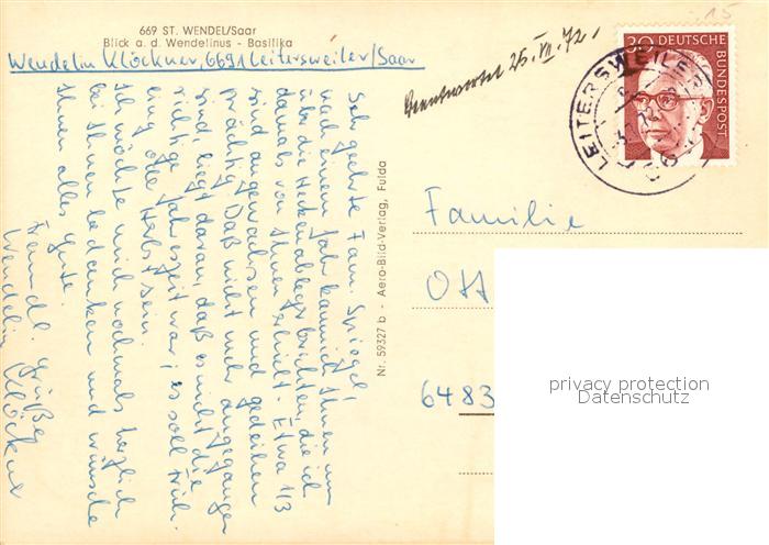 73111967 alte Postkarte St Wendel Wendelinus Basilika postalisch gelaufen Erhaltung siehe scans [NatalD47] KatCode: 11110010046117