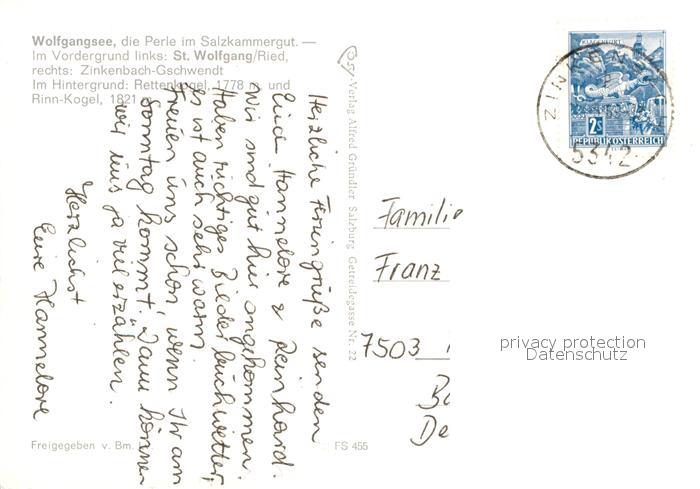 72959704 alte Postkarte St Wolfgang Salzkammergut Fliegeraufnahme Zinkenbach-Gschwendt Rettenkogel postalisch gelaufen Erhaltung siehe scans [NatalD47] KatCode: 11390315040717