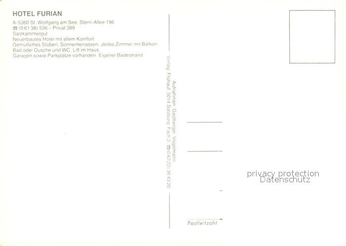 73516422 St Wolfgang Salzkammergut Hotel Furian am Wolfgangsee Bootsverleih postalisch nicht gelaufen Erhaltung siehe scans [FriedD77] KatCode: 11390315040717