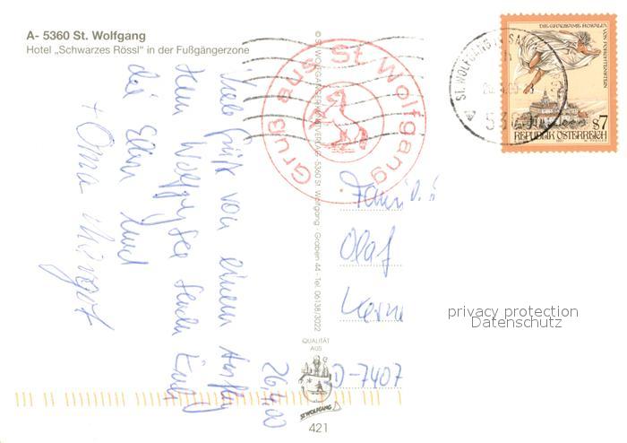 73091631 alte Postkarte St Wolfgang Salzkammergut Hotel Schwarzes Roessl Fussgaengerzone postalisch gelaufen Erhaltung siehe scans [KathaD81] KatCode: 11390315040717