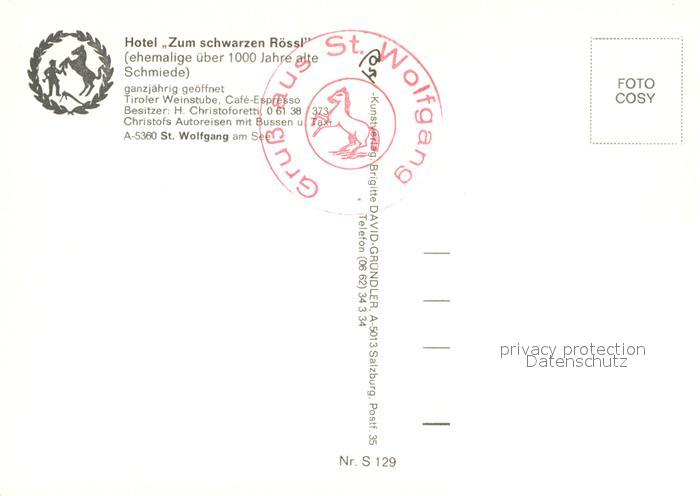 72960830 St Wolfgang Salzkammergut Hotel Zum schwarzen Roessl postalisch nicht gelaufen Erhaltung siehe scans [LiesaD40] KatCode: 11390315040717