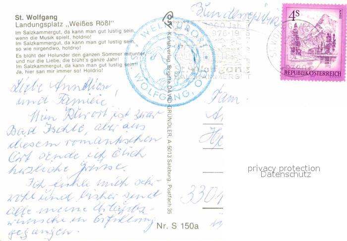 72918492 alte Postkarte St Wolfgang Salzkammergut Landungsplatz Hotel Restaurant Weisses Roessl am Wolfgangsee postalisch gelaufen Erhaltung siehe scans [FriedD77] KatCode: 11390315040717